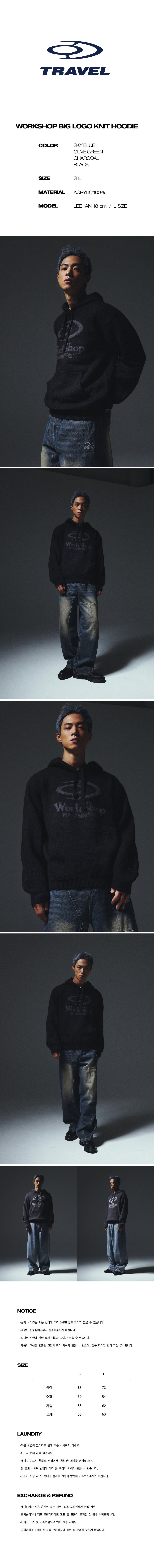 워크샵 빅 로고 니트 후드 블랙
