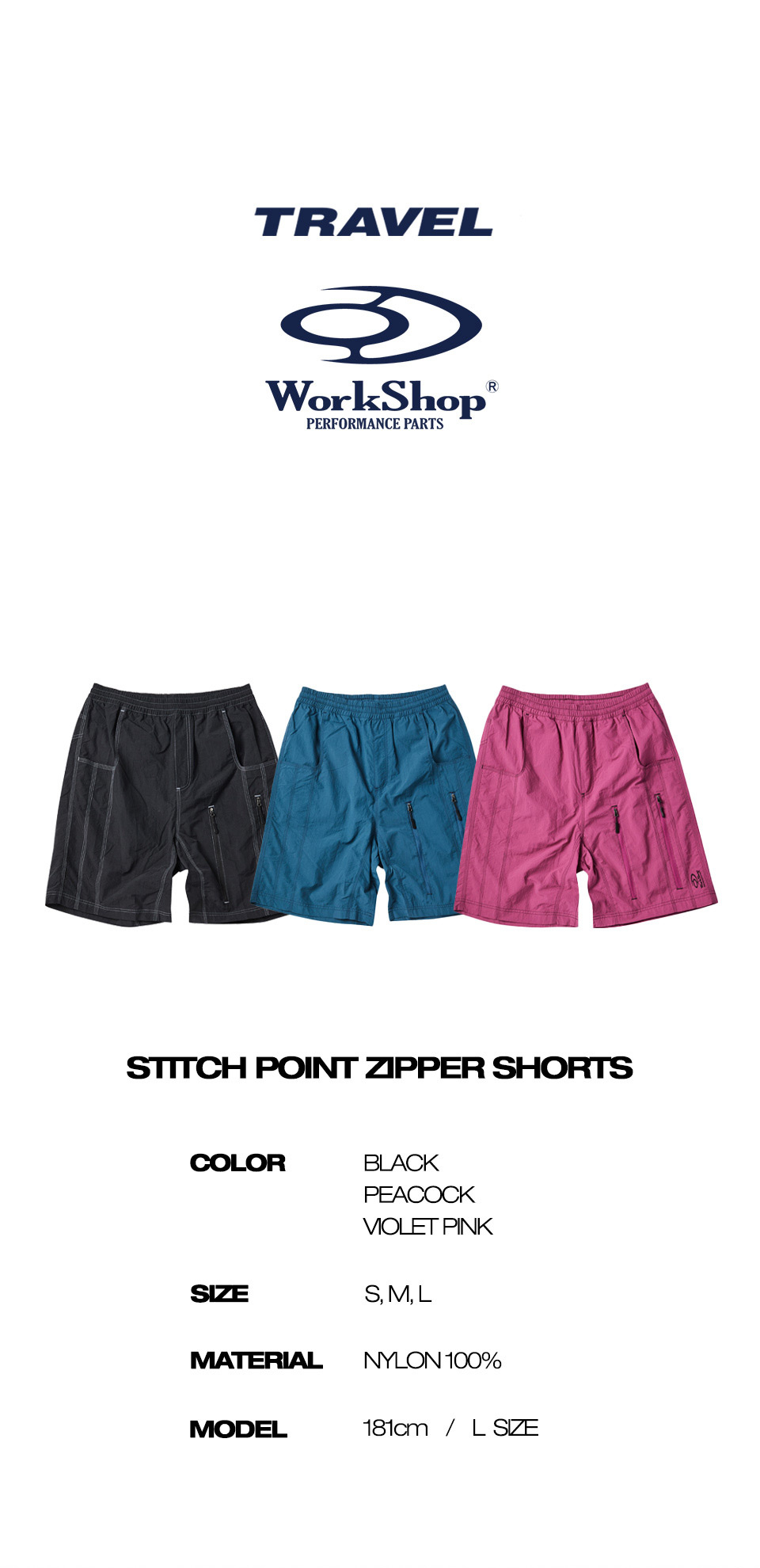 스티치 포인트 지퍼 쇼츠 블랙