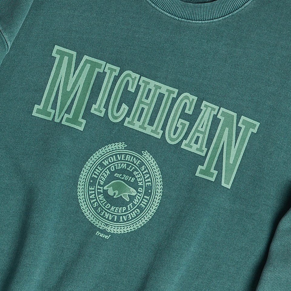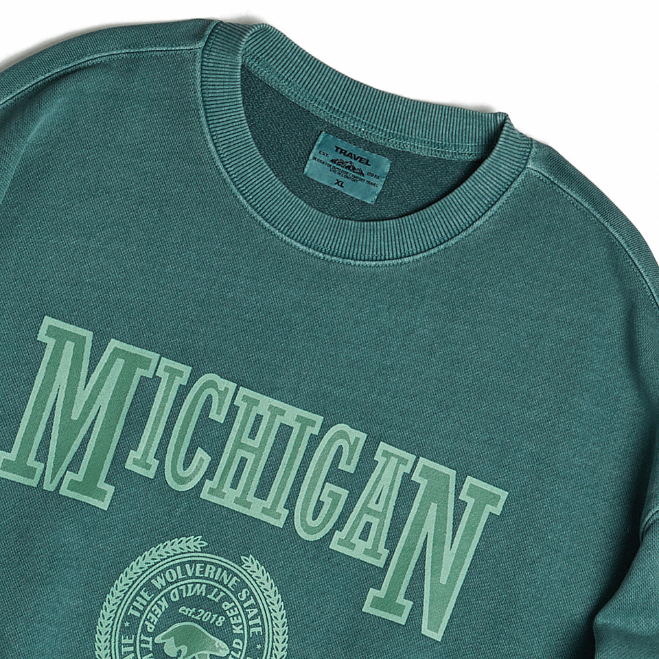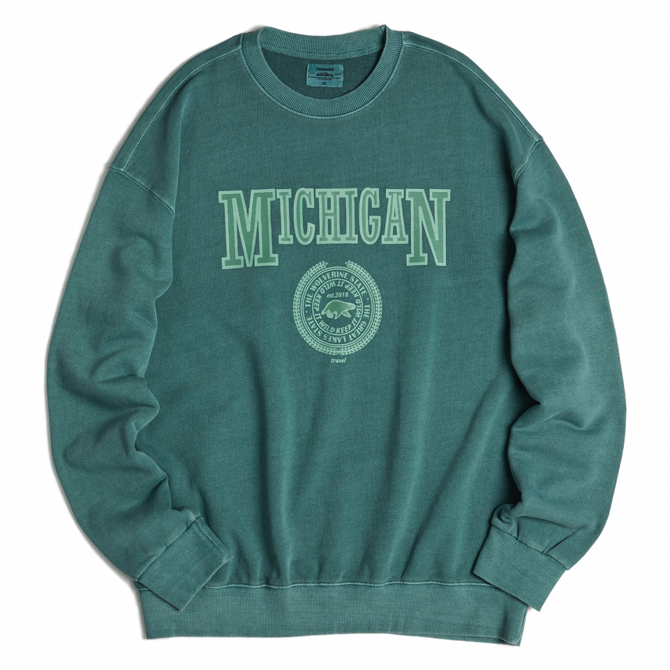 미시간 울버린 피그먼트 스웨트셔츠 버리디안 그린