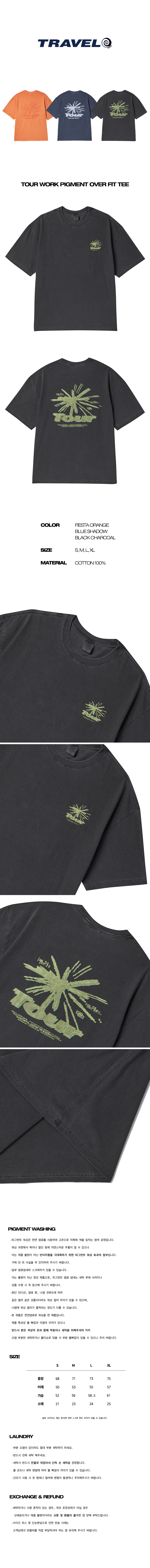 투어 워크 피그먼트 오버핏 반팔티 블랙 차콜
