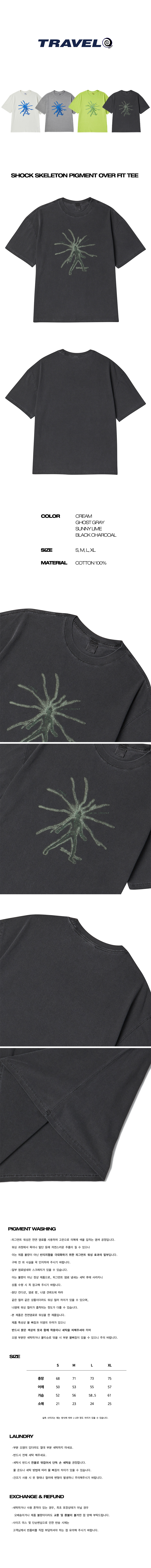 쇼크 스켈레톤 피그먼트 오버핏 반팔티 블랙 차콜