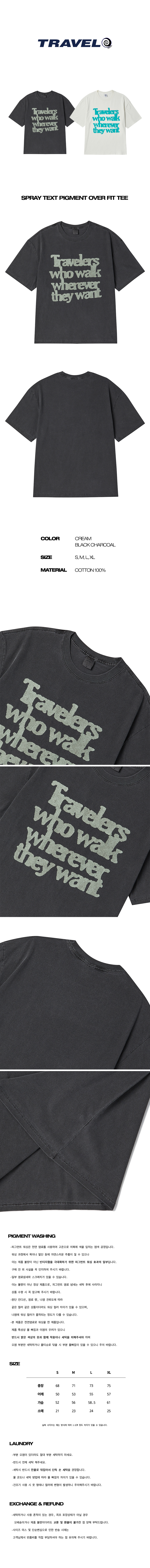 스프레이 텍스트 피그먼트 오버핏 반팔티 블랙 차콜
