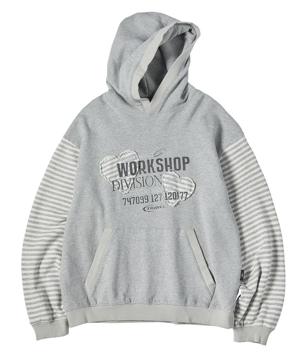 스트라이프 슬리브 후드티 그레이