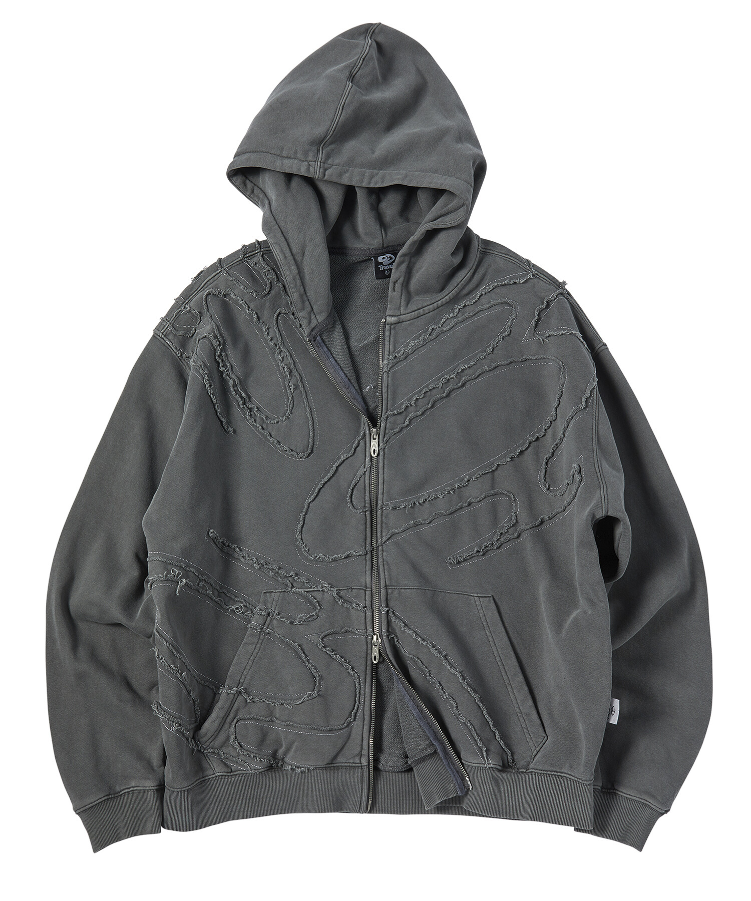 로고 아플리케 피그먼트 후드 집업 블랙 차콜