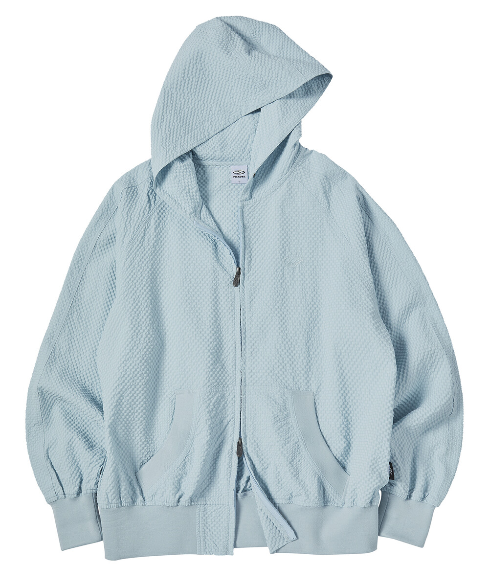 링클 라이트 후드 집업 블루