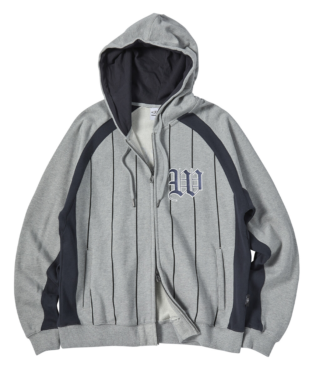 베이스볼 래글런 후드 집업 그레이