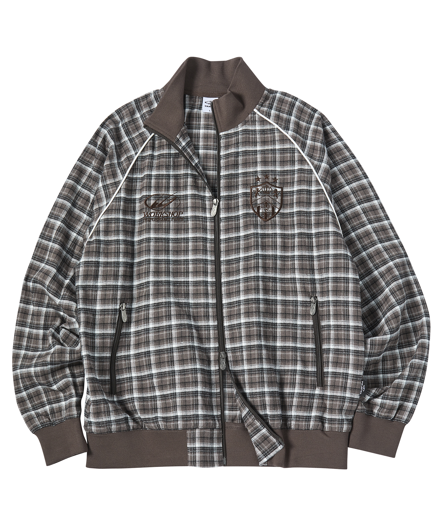 체크 파이핑 트랙 자켓 브라운