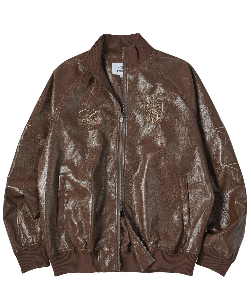 스타 슬리브 신세틱 레더 자켓 브라운