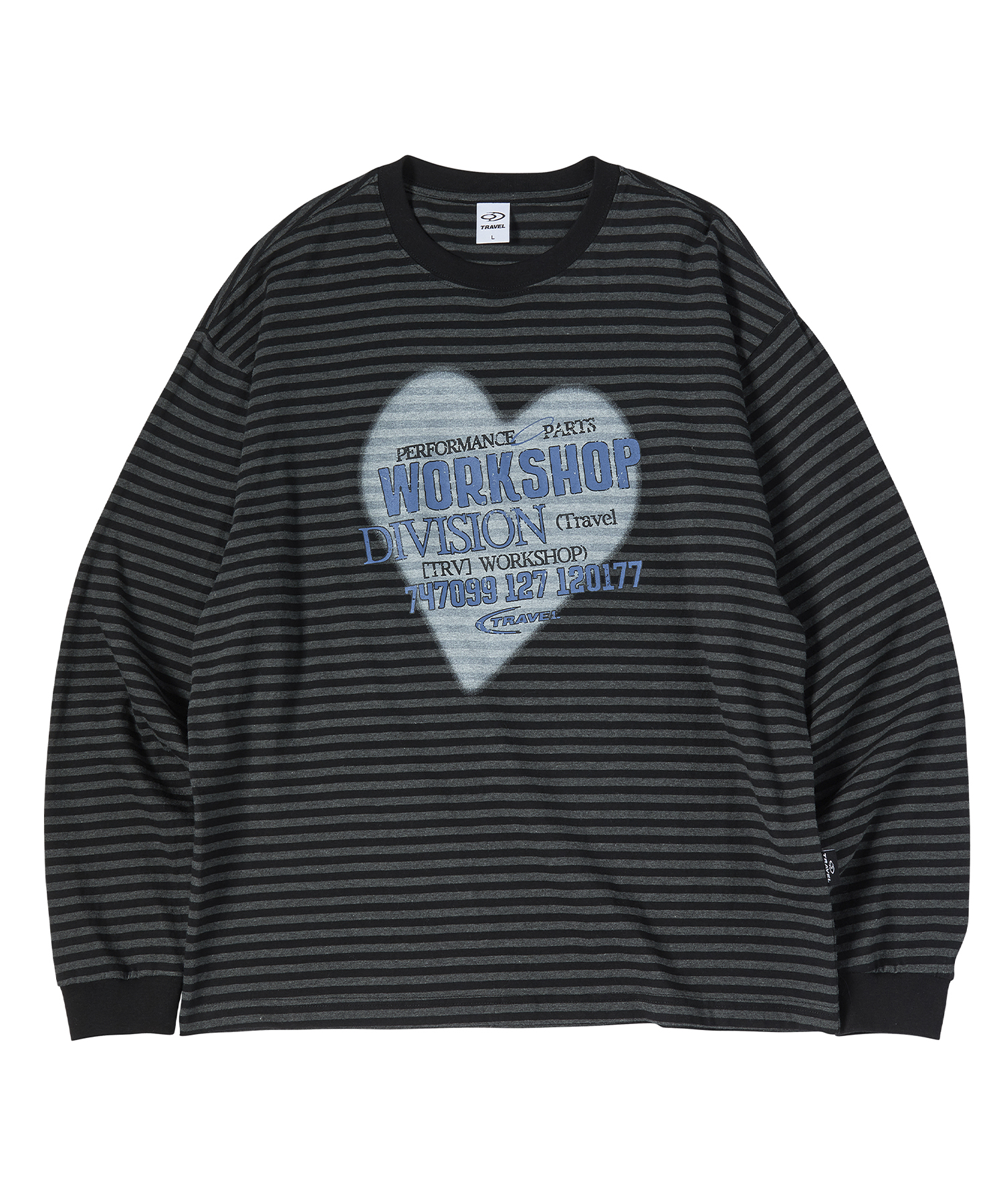 스프레이 하트 스트라이프 롱 슬리브 블랙